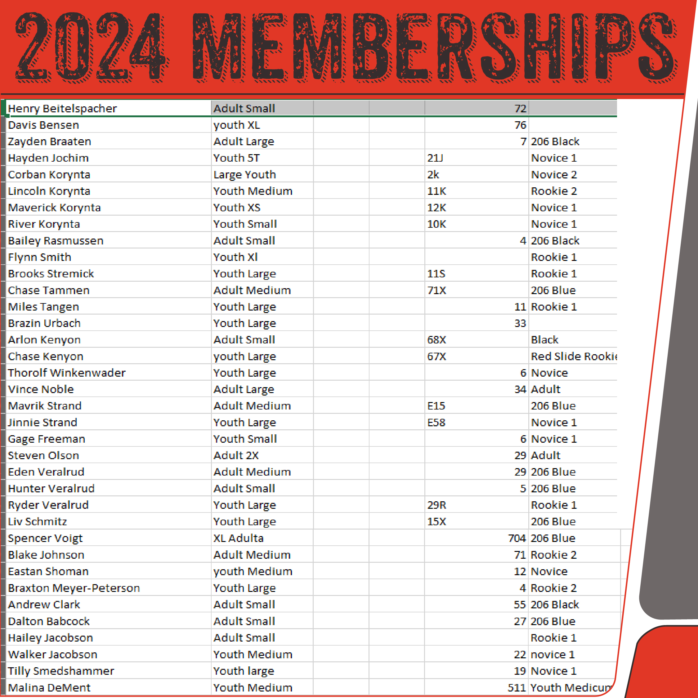 Here’s a list of 2024 paid memberships. If your name isn’t on this list, you’ll not receive an award at our banquet. (See link below) Please review the name spelling, sweatshirt size, number, and class. If possible, let us know via Facebook Messenger if there are any changes or additions. And please pass the word to other teams. Deadline is January 17.