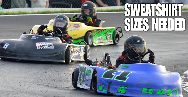 Below are the paid members of the 2019 Red River Kart Club. We need sweatshirt sizes for those drivers. (They come in Adult and Youth sizes XS through XL.) Please text your name and sweatshirt size to: 701-238-3200 as soon as possible. Thank you!