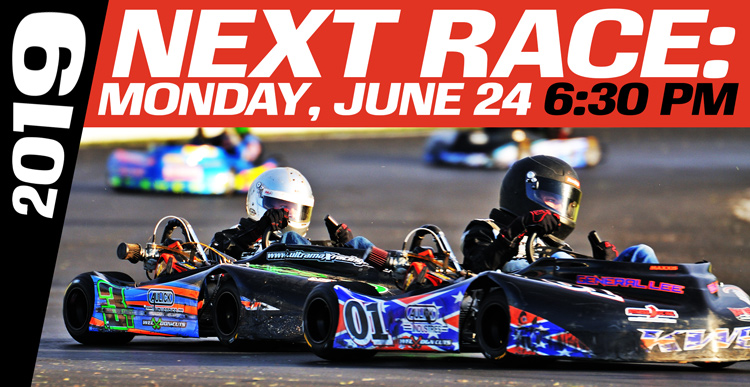 Gates Open: 5:30 pm Driver Draw Cutoff: 6:15 pm Race: 6:30 pm Racing divisions: Novice Rookie Briggs Local Option 206 (Blue & Black Slides) Adult Stock Prices: Grandstands & Tailgate Sections = FREE Driver + Kart = $20 Pit Members = $10 We