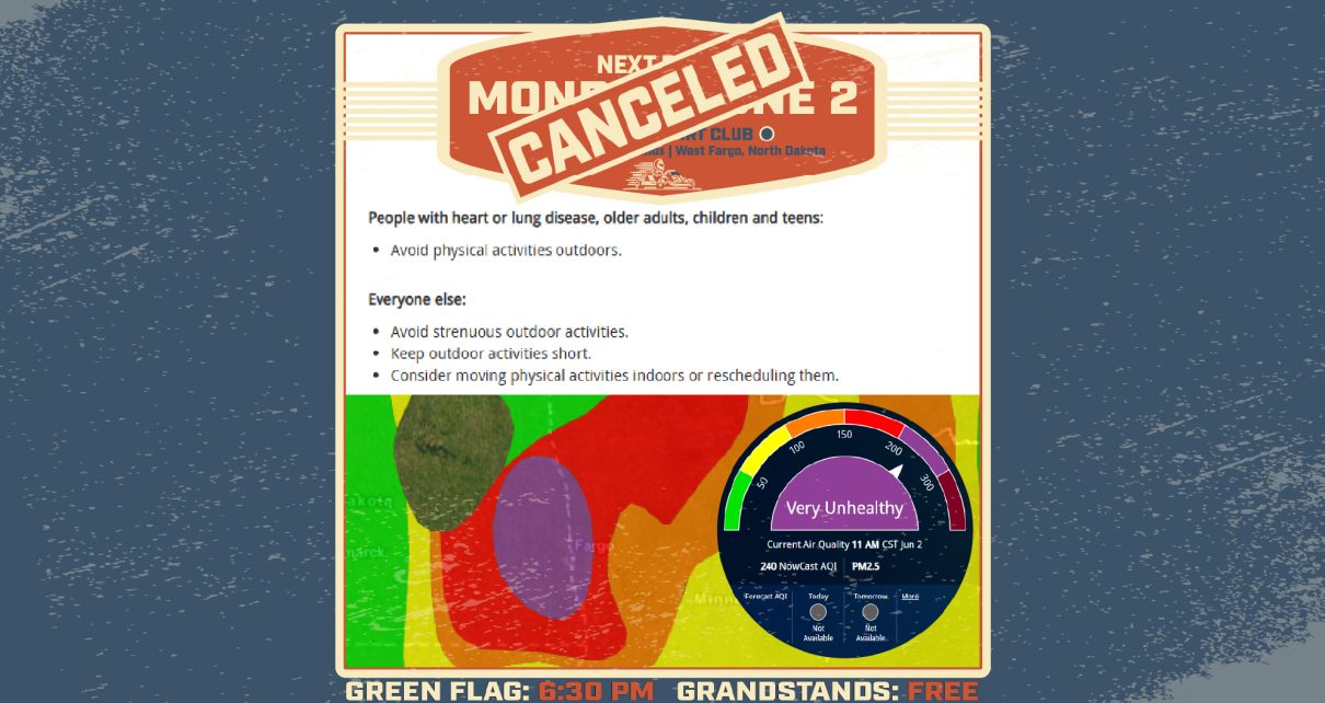 Due to the extremely poor air quality, and for the safety of our drivers, teams, & fans, we are CANCELING the races scheduled for tonight. NEXT RACE: Monday, June 9 Times: Gates Open: 5:30 pm Driver Draw Cutoff: 6:15 pm Race: 6:30 pm Prices: Grandstands & Tailgate Sections = FREE Driver + Kart = $25 […]