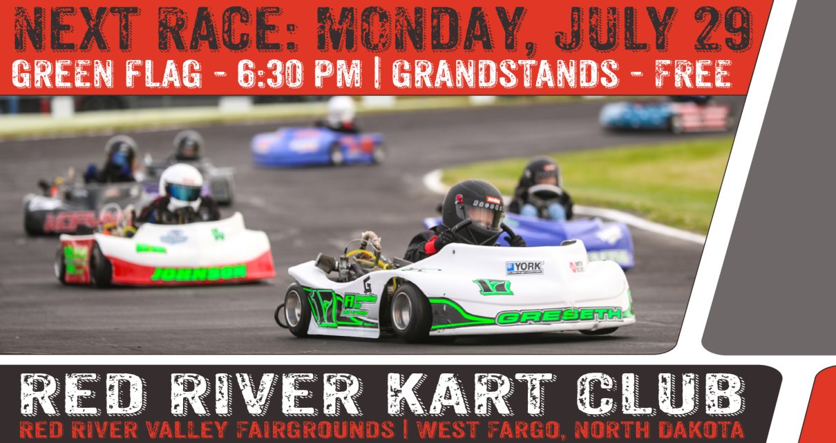 Sponsored by:   Monday, July 15 • Heats 1 & 2 Monday, July 22 • Heat 3 and Feature Race • Meet & Greet during Intermission Times: Gates Open: 5:30 pm Driver Draw Cutoff: 6:15 pm Race: 6:30 pm Prices: Grandstands & Tailgate Sections = FREE Driver + Kart = $25 Pit Members = $15 […]